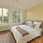 Elle est située au premier étage en façades Est et Nord, face au jardin.
